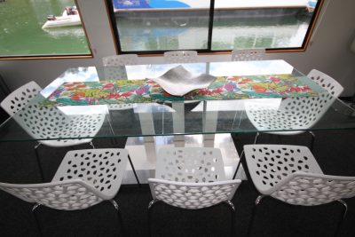 The “Diplomat” is the largest boat in the fleet, featuring luxury appointments. The Diplomat has comfortable sleeping accommodation for twelve people and features a large dining table to seat twelve people. There are ample sun decks and private areas including rooftops. Deckchairs and outdoor furniture are provided for your comfort. The top deck features a large sun canopy and non-glare deck. Linen, doonas, tea towels and towels are provided. Soap, detergent, dishwasher powder, some toilet paper and garbage bags are also provided. A car style cigarette lighter is provided to charge phones. Solar panels and the motor recharge batteries.